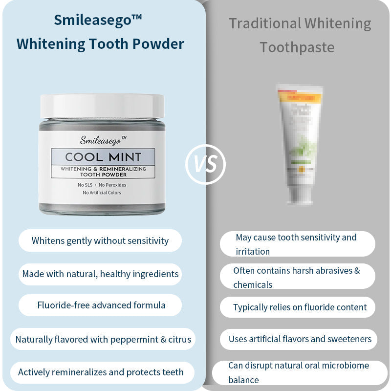 Forget everything you know about ordinary toothpaste. Smileasego™ whitening remineralizing tooth powder isn’t just another dental product, it’s a scientifically formulated solution that whitens teeth, strengthens enamel, and fights bad breath at the source. It actively repairs and protects, giving you a smile that’s not just brighter, but healthier.